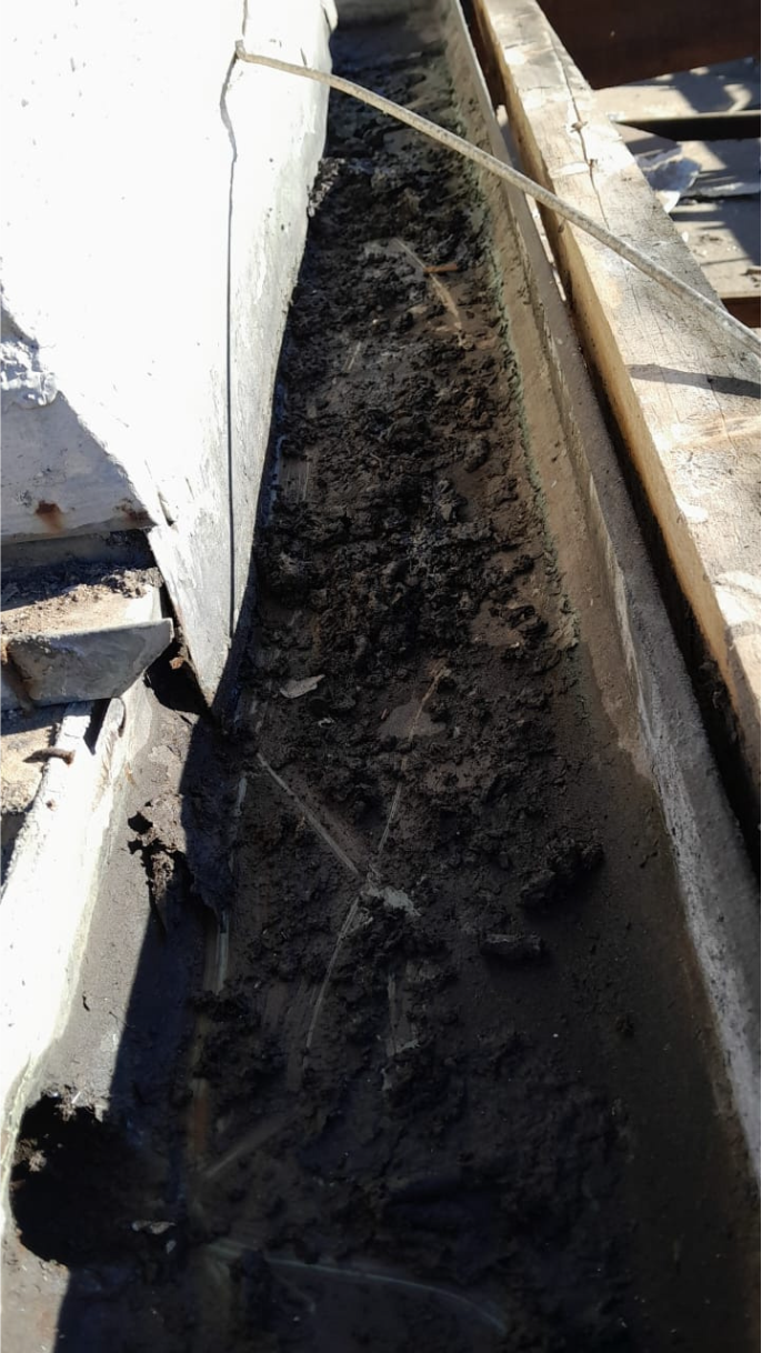 4. Limpeza de calhas com muita sujeira e lodo.