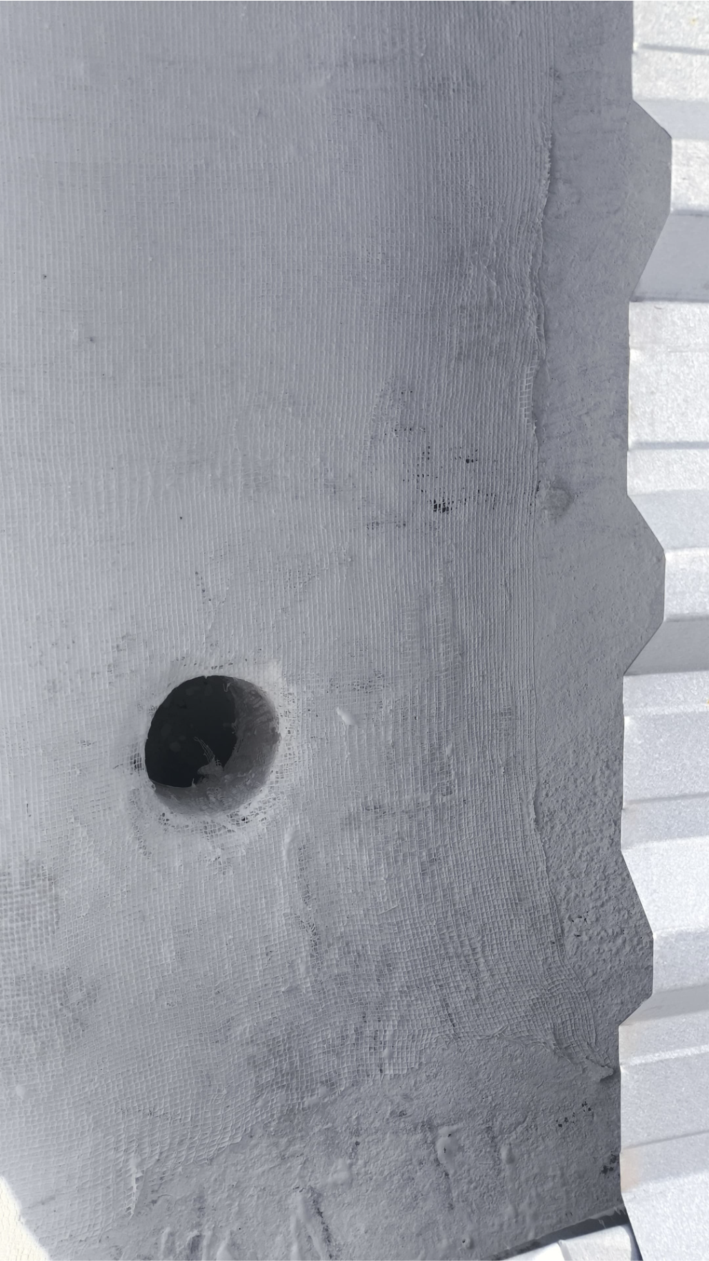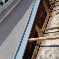 12. Instalação de telas de poliéster para conter as fissuras em toda a extensão das calhas