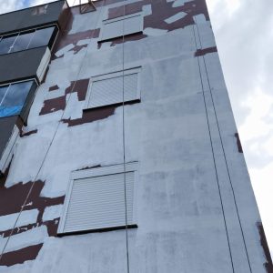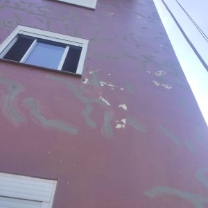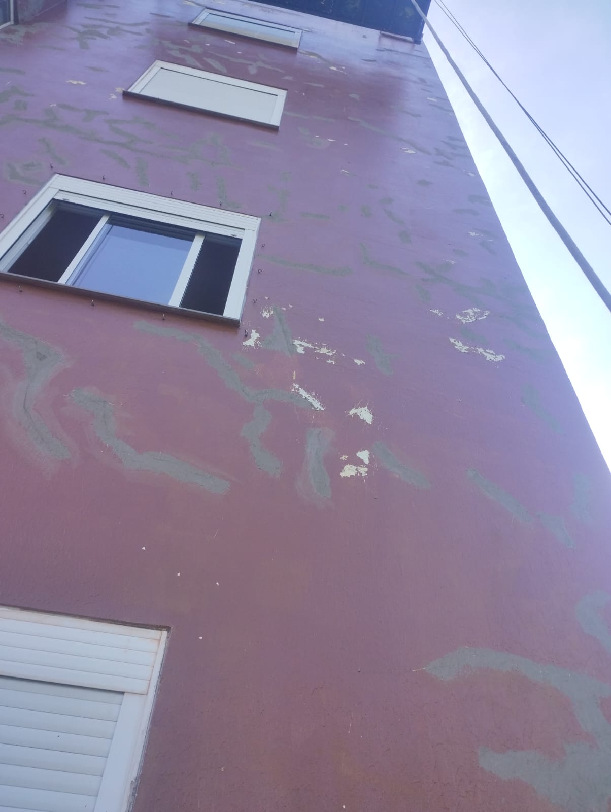 Fachada com pintura de três demãos de tinta emborrachada e limpeza das persianas