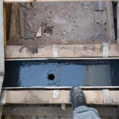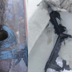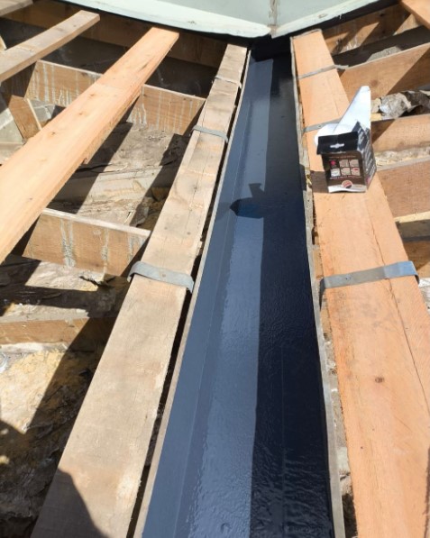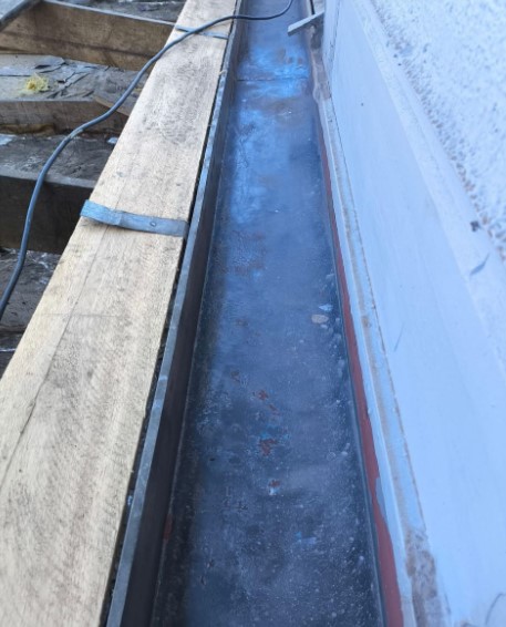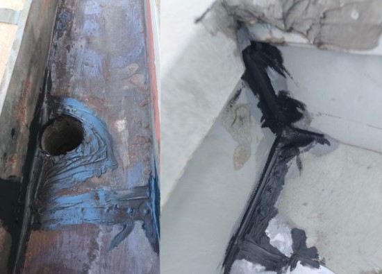 Aplicação de fundo galvanizado e novas vedações nas calhas.